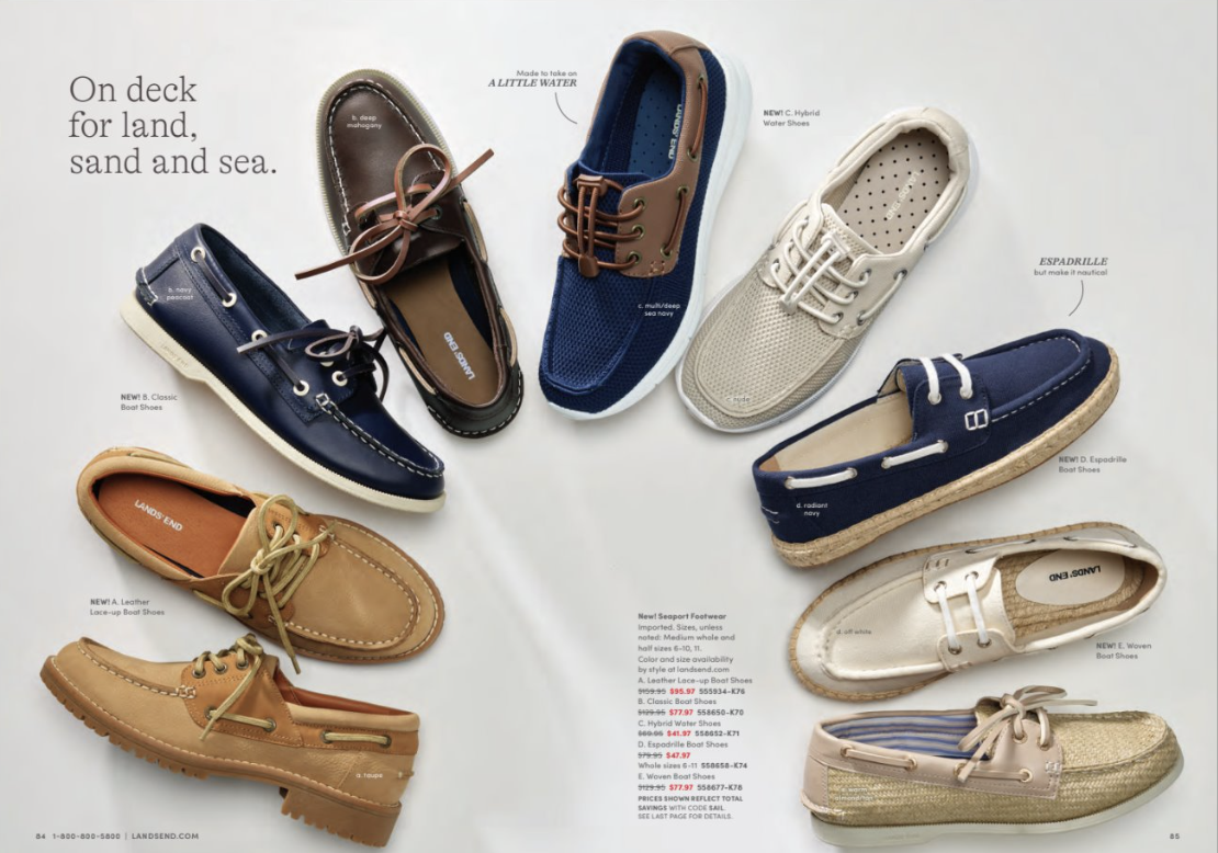 Lands End Creative- Direction on which footwear marketing, copy and creative layout.